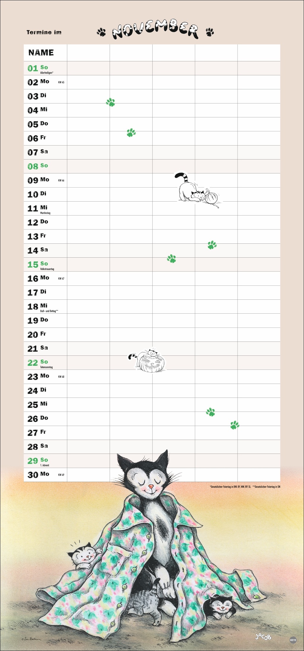Täglich schmunzeln mit den fröhlichen Illustrationen von Sven Hartmann: Jacob und seine Katzen-Familie zaubern Klein und Groß ein Lächeln auf die Lippen